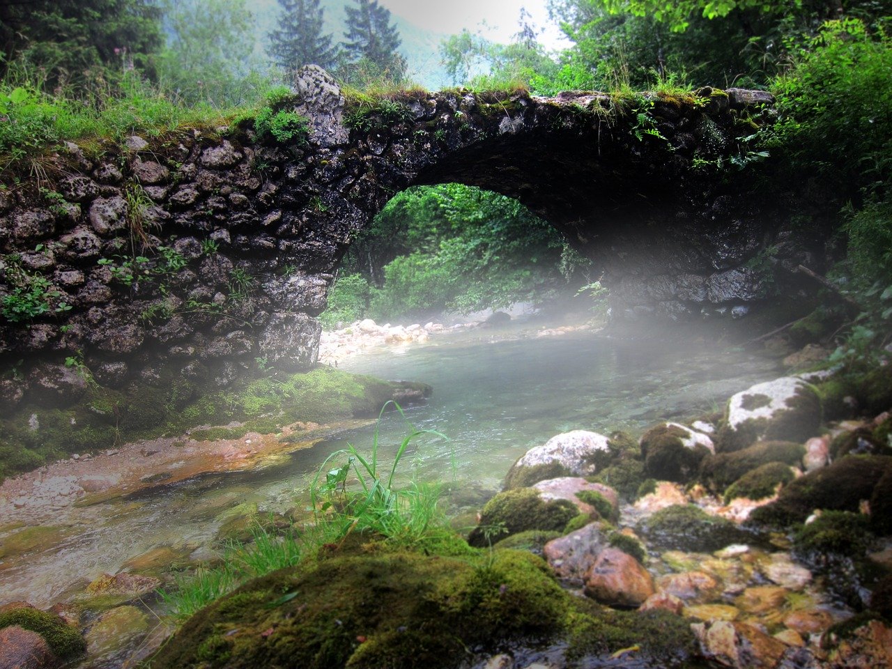 stone-bridge-989506 石橋 霧 神秘的な 古い橋 ファンタジー フォレスト 川 現在の 水 がらくた